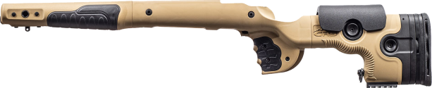 The Bifrost is our most adjustable and lightweight composite stock. Rugged and weatherproof with an ergonomic grip and fore-end that give you full control over your rifle in any condition.